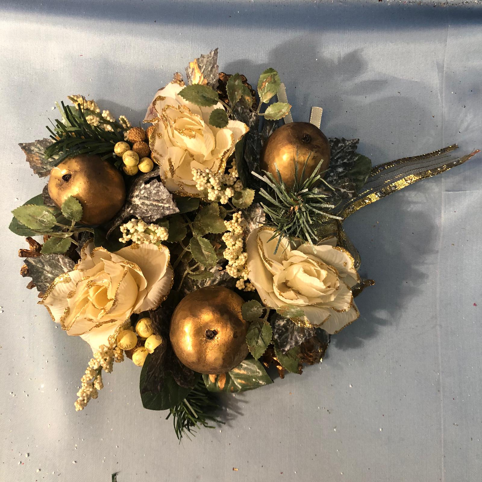 • Ghirlanda con rose bianche e glitterate di colore oro