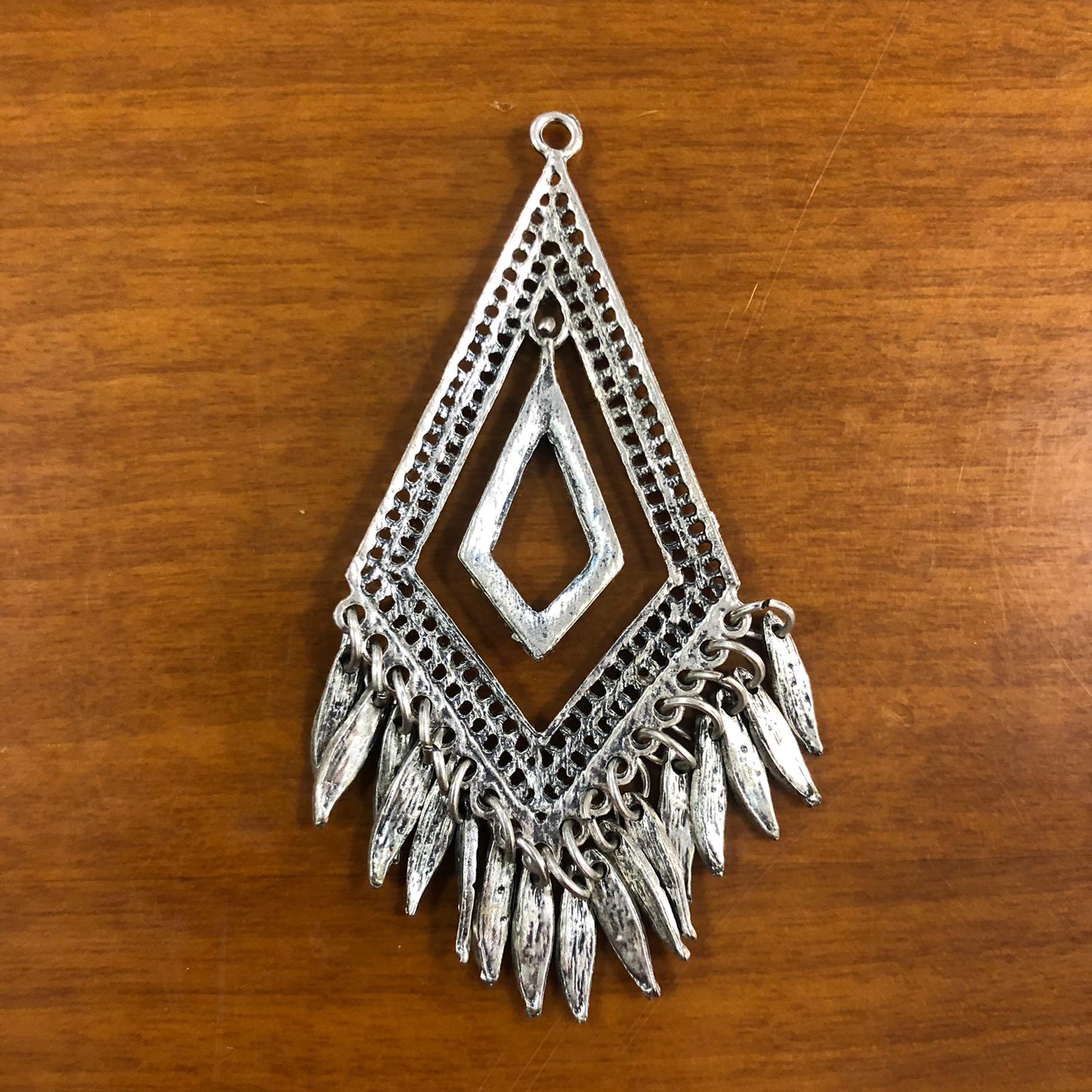 Ciondolo vintage a forma romboidale lavorato a mano ricoperto di gemme c/pendenti.