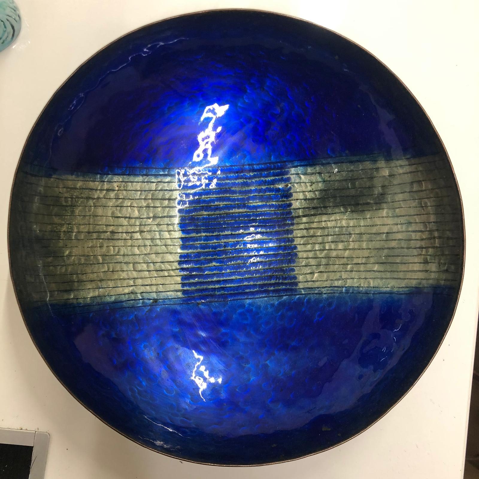 Ciotola in rame sbalzato e smaltato di colore blu di Valento – Padova