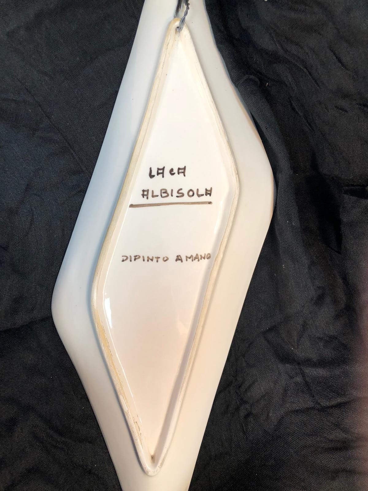 Grande ciotola/piastra in ceramica degli anni ’50-’60 di Laca Albisola Italia. Dipinto a mano e firmato da G. Carell. Da appendere a parete.
