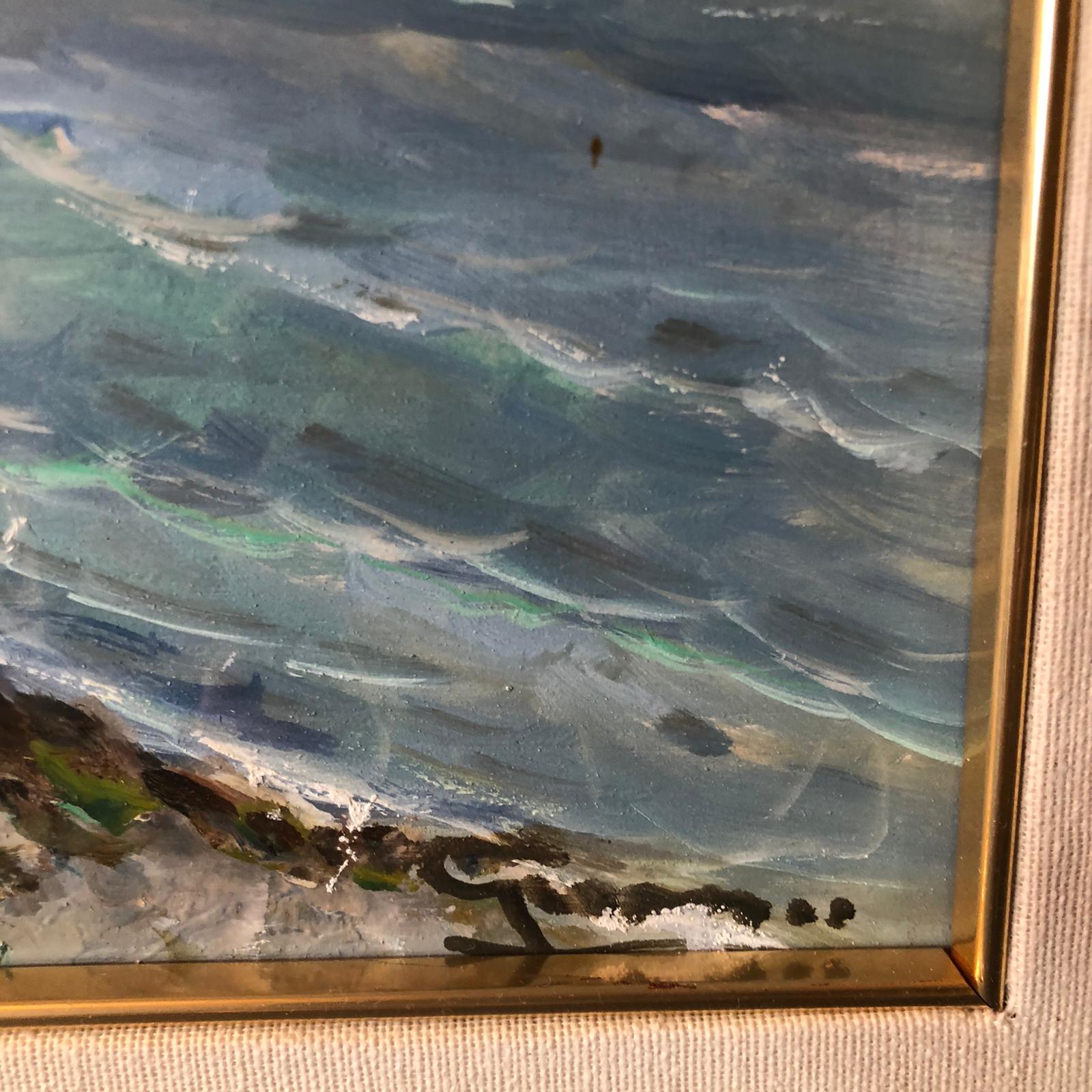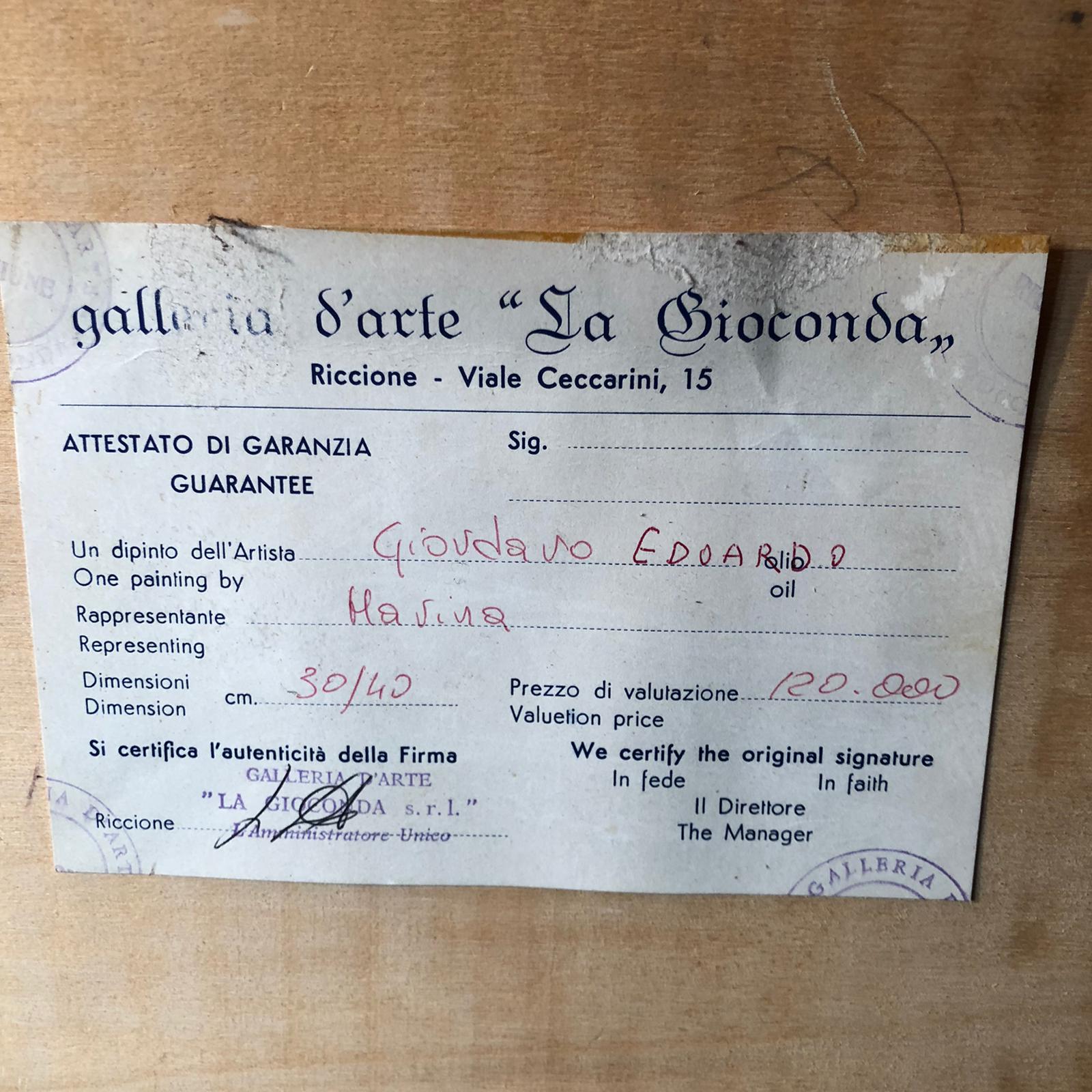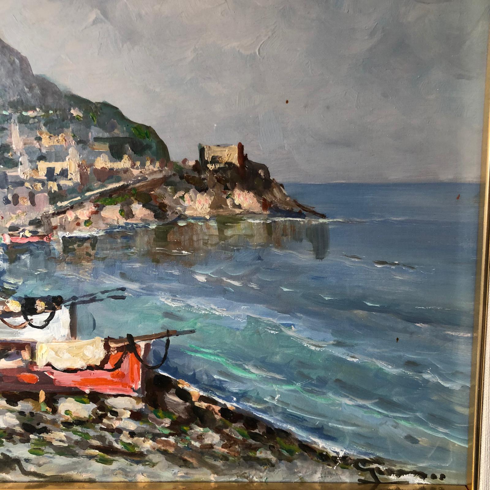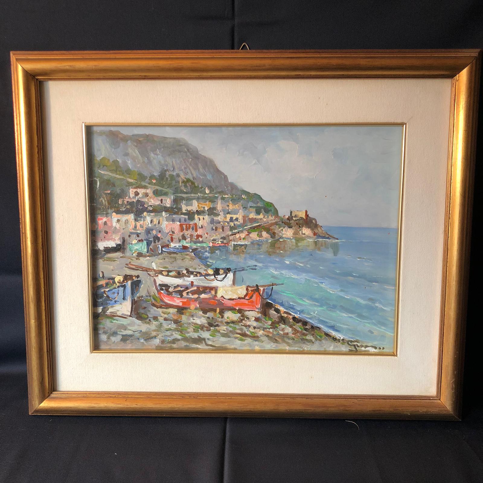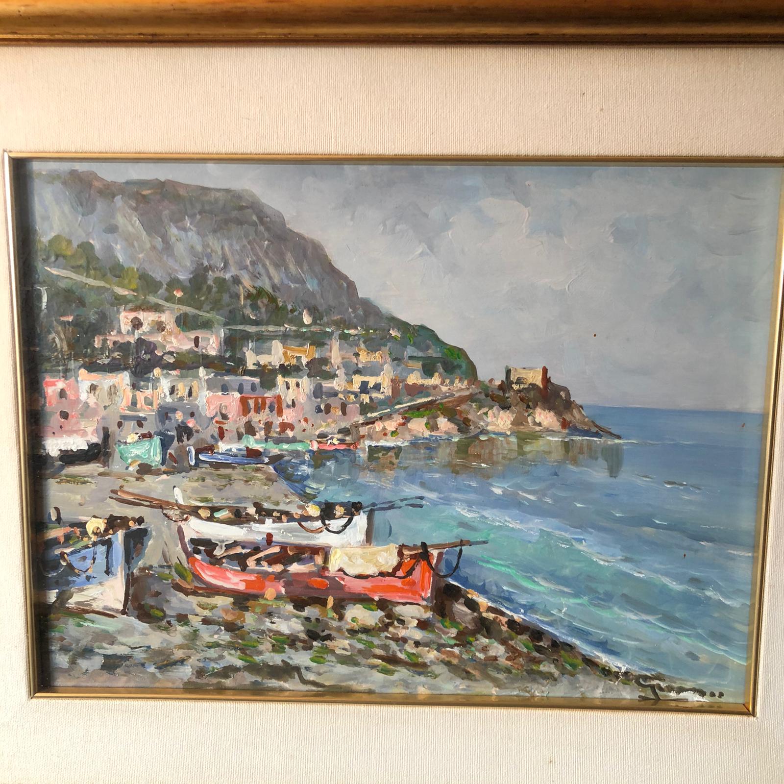 Dipinto su tela c/cornice dorata che raffigura una città marina