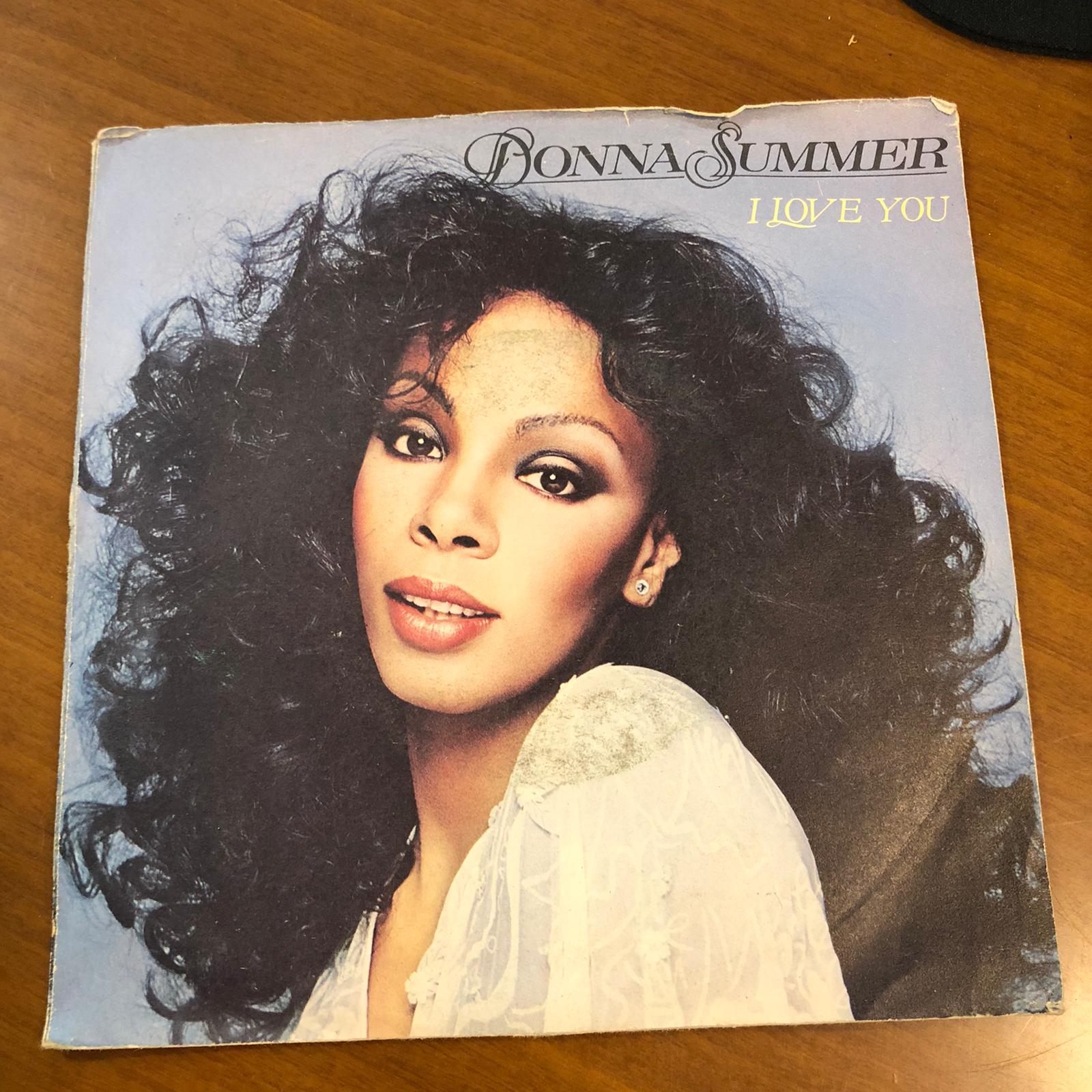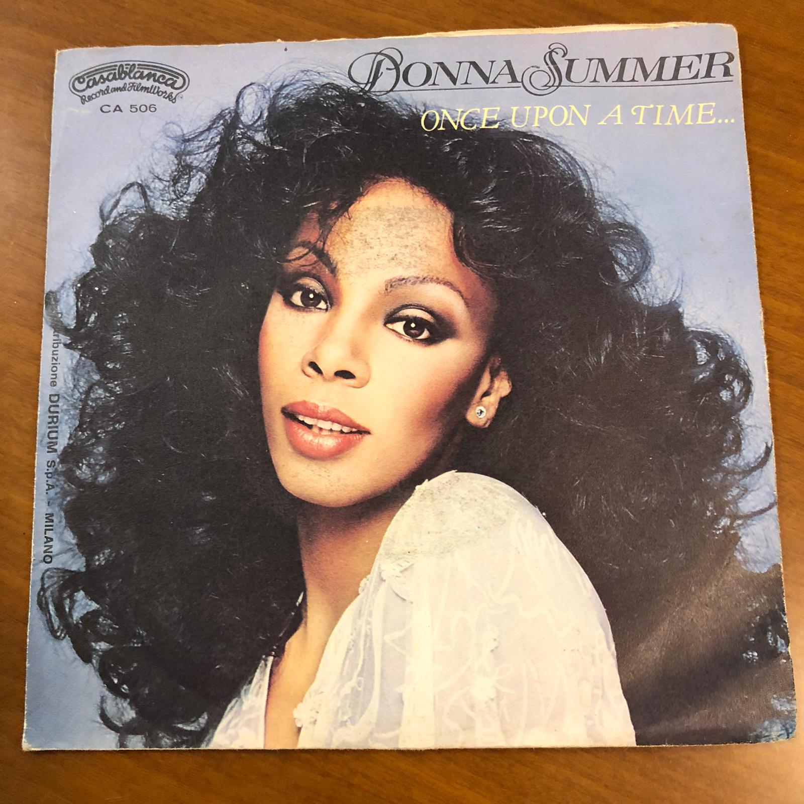 Vinile LP Donna Summer 1977 album Once Upon A Time, boxes of second-hand LP records, England.