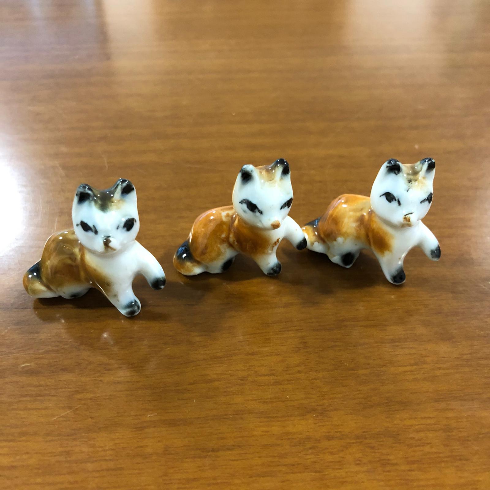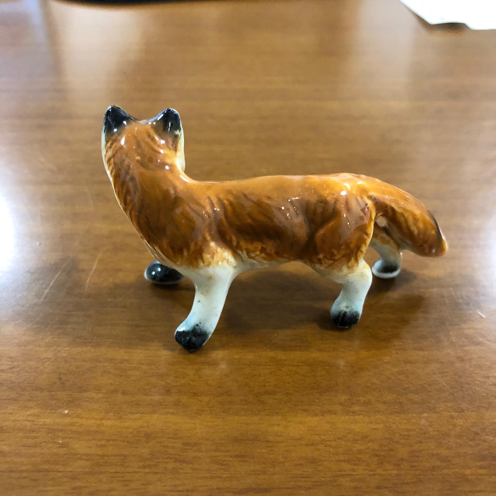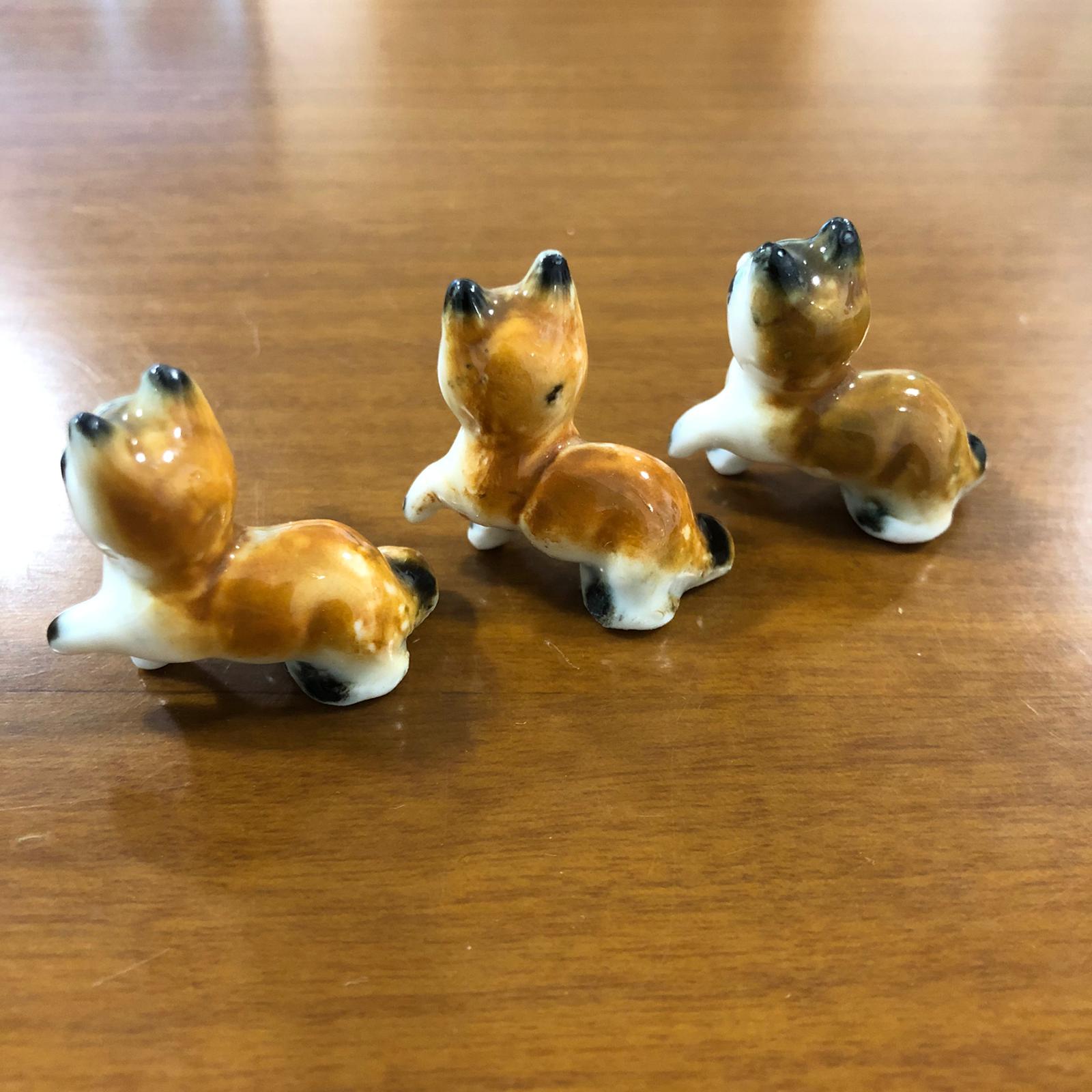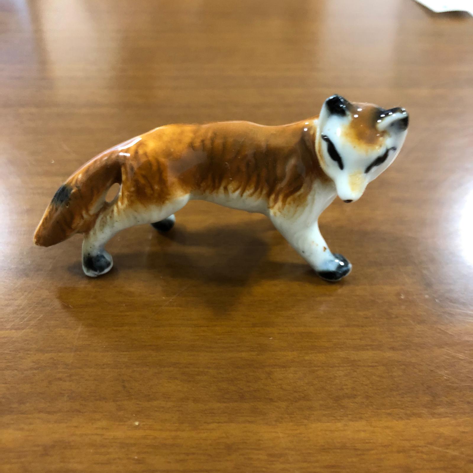 Piccoli bellissimi soprammobili in ceramica smaltati che rappresentano una famiglia di volpe composta da madre e tre cuccioli.
