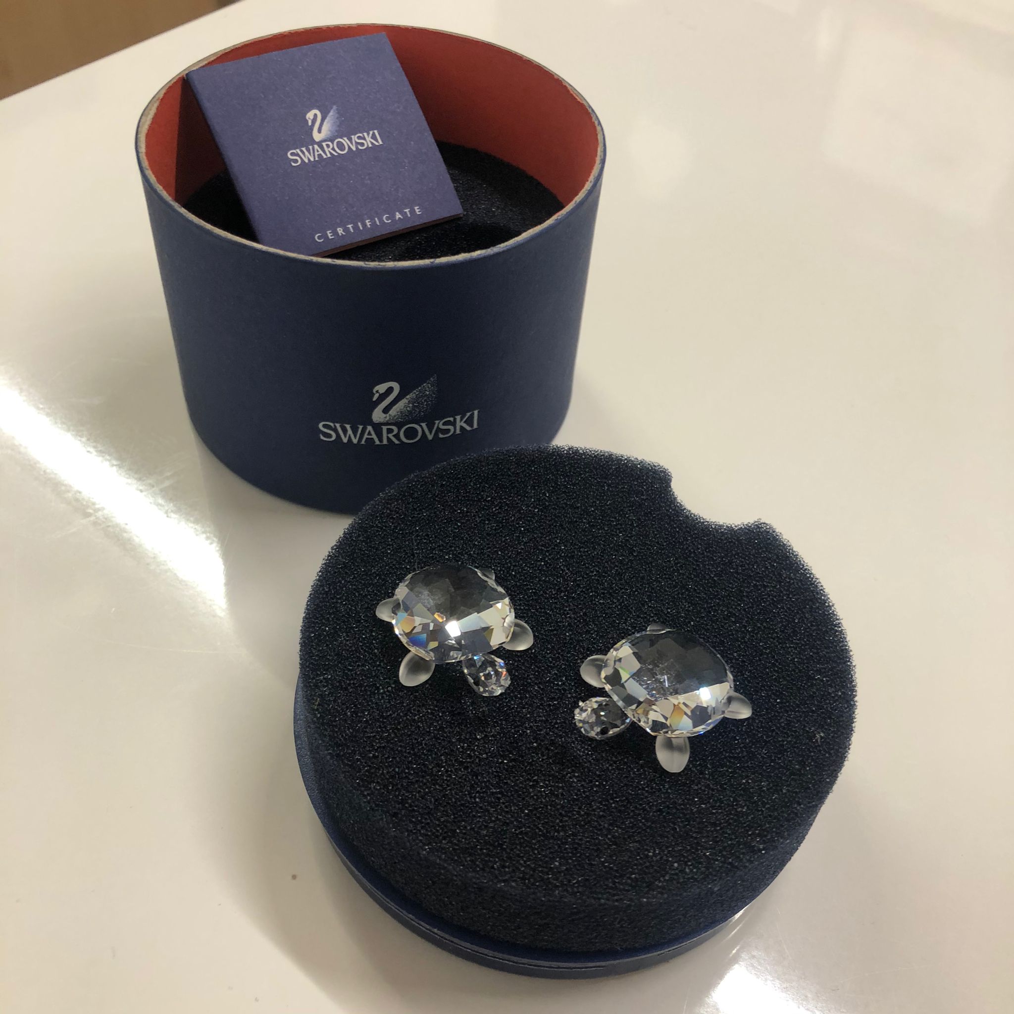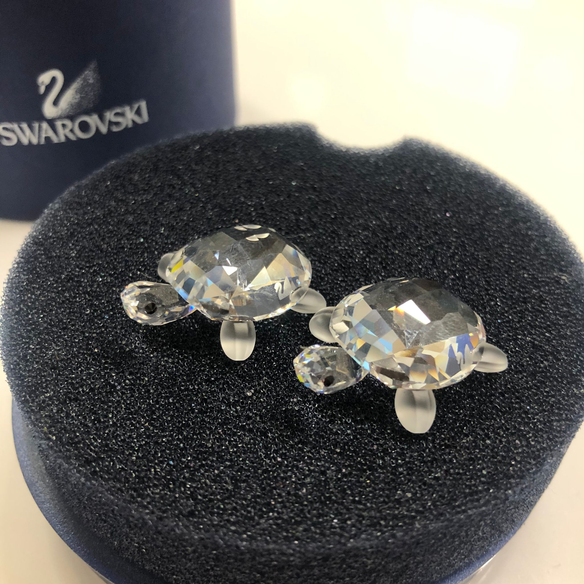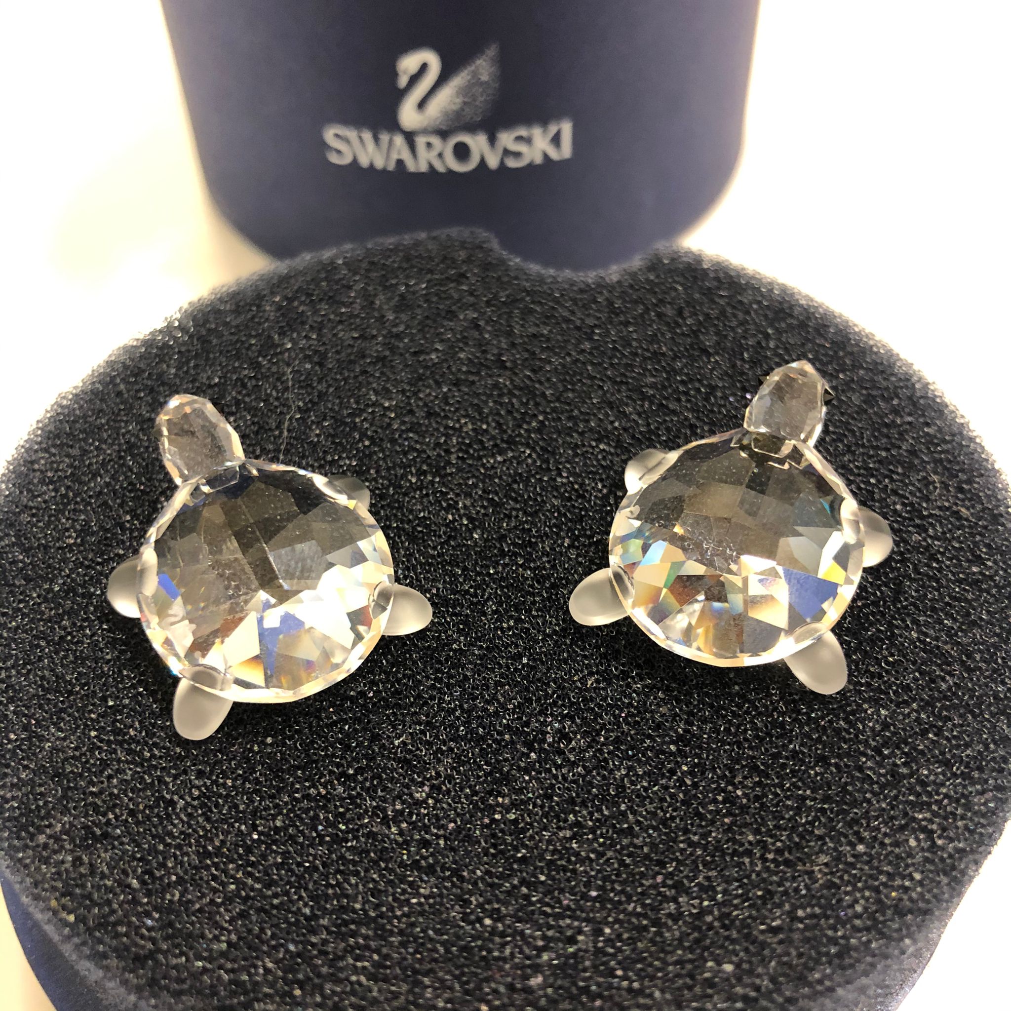 Piccola coppia di tartarughe in Swarovski tenute in ottime condizioni, come nuovo, con logo sul guscio.