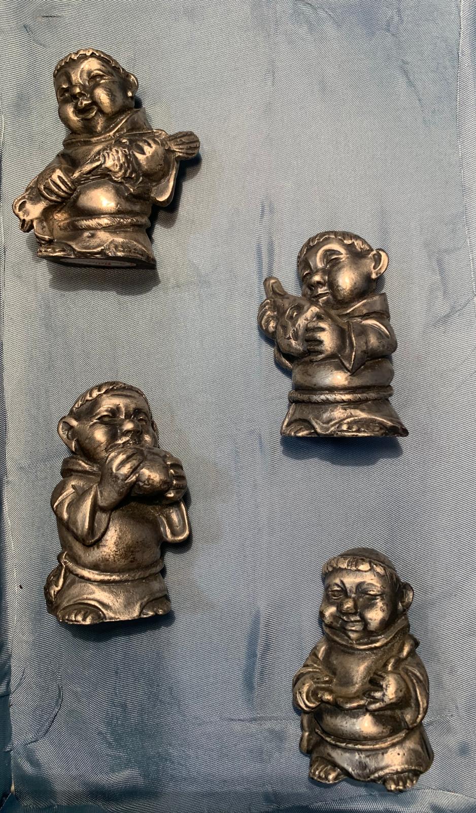Quattro fraticelli in miniatura in peltro argentato massiccio.