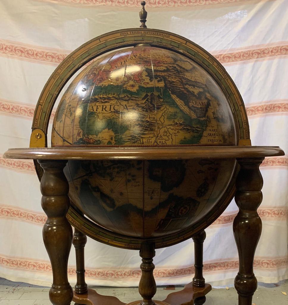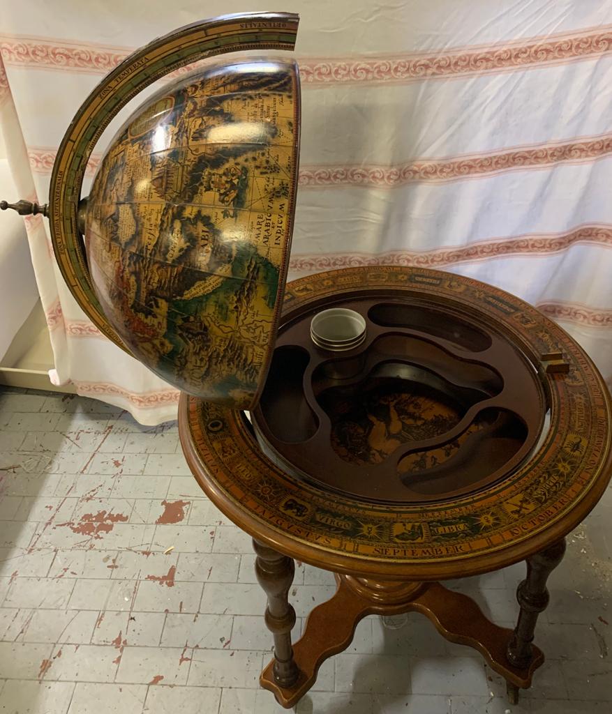 Mobile bar “Mappamondo” vintage c/rotelle anni ’70. Mobile molto particolare con cartina antica.