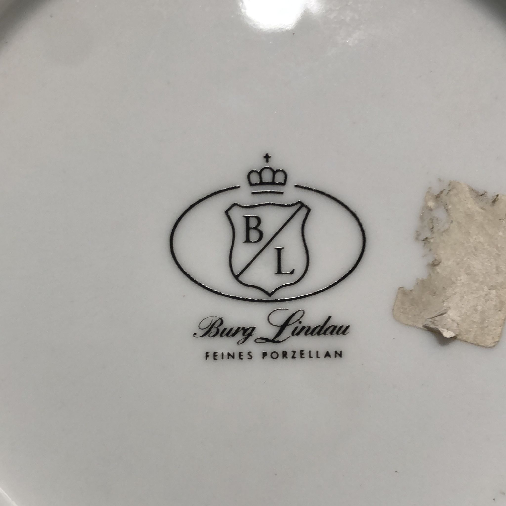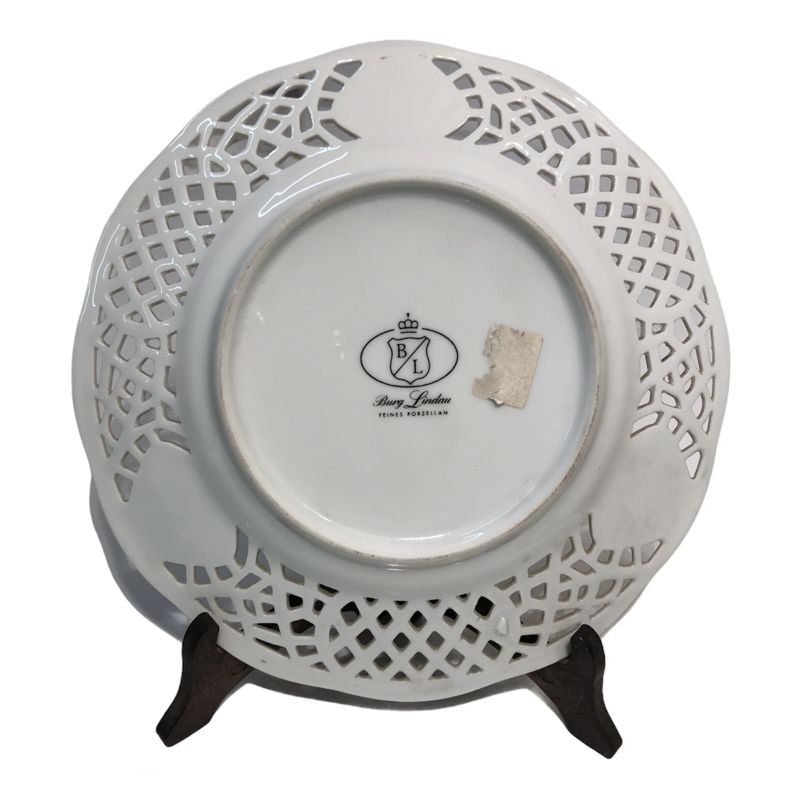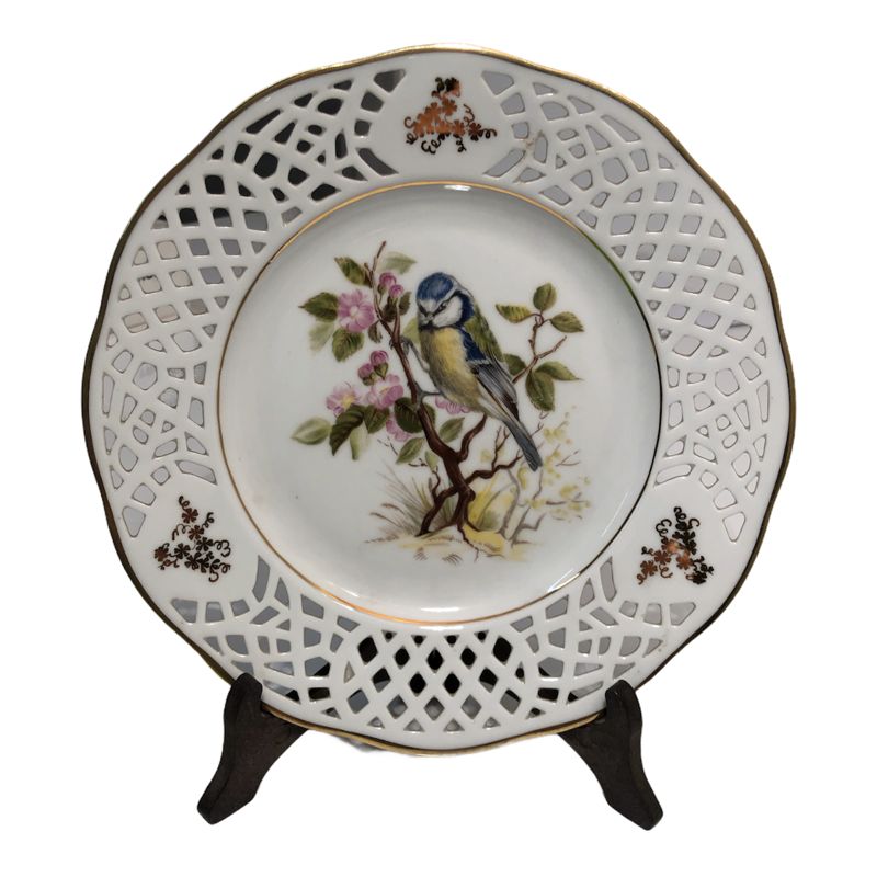 Bellissimo ed elegante piatto a parete in porcellana Burg Lindau Feines Porzellan vintage anni ’60. Modello raro raffigurante un uccellino di Burg Lindau c/bordo traforato e dorato.