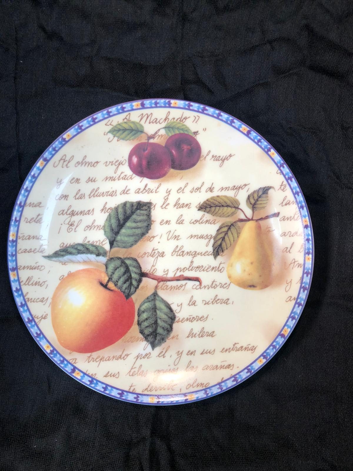 Piatto a parete Limoges raffigurante natura morta su sfondo poesia in spagnolo – Eden Collection.