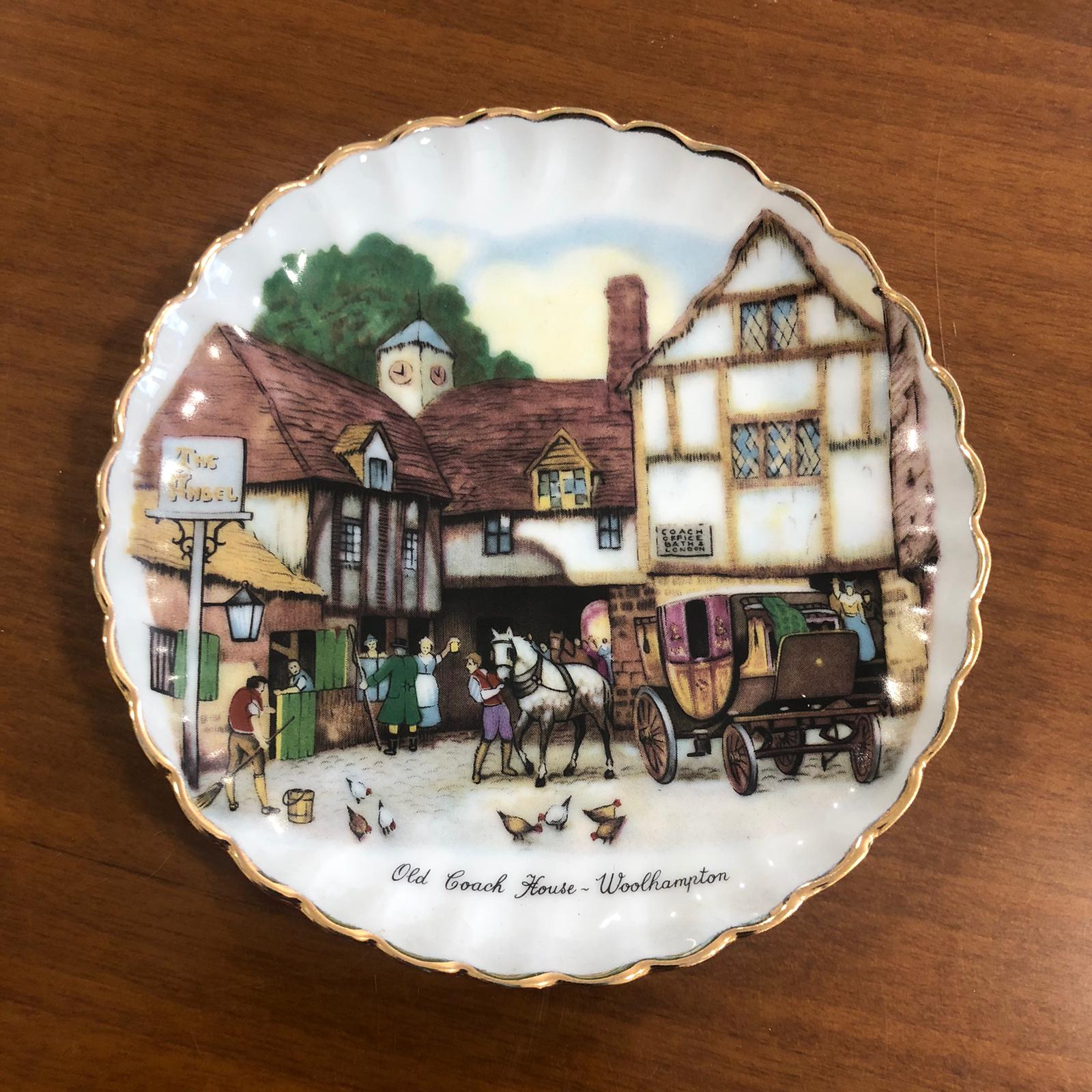 Piatto decorativo in porcellana Limoges che rappresenta Old Coach House Woolhampton vintage.