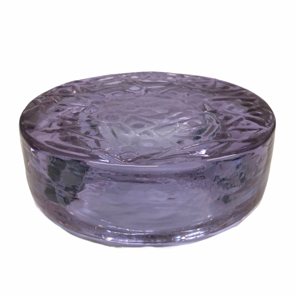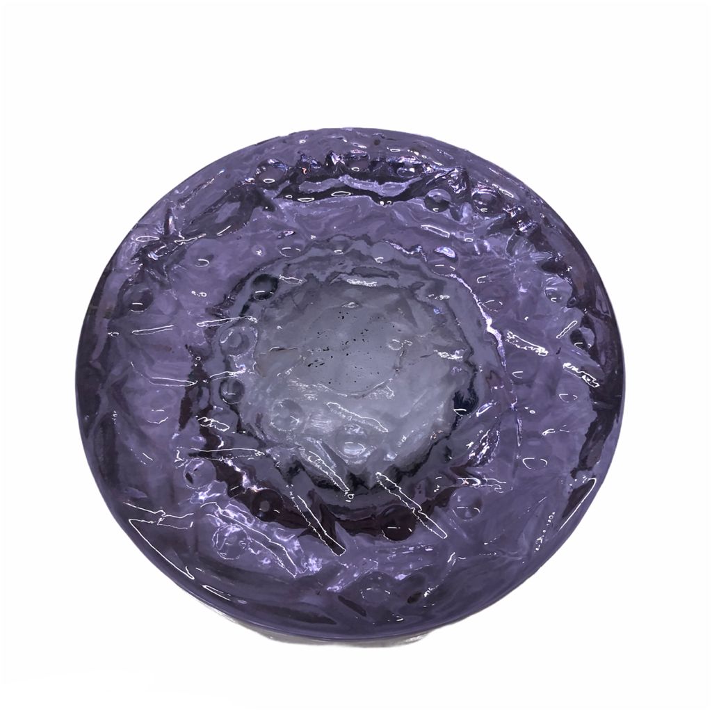 Piccolo posacenere viola in vetro di Murano realizzato dai maestri vetrai. Lavorato nella parte sottostante per rendere un effetto di “linee intrecciate”.