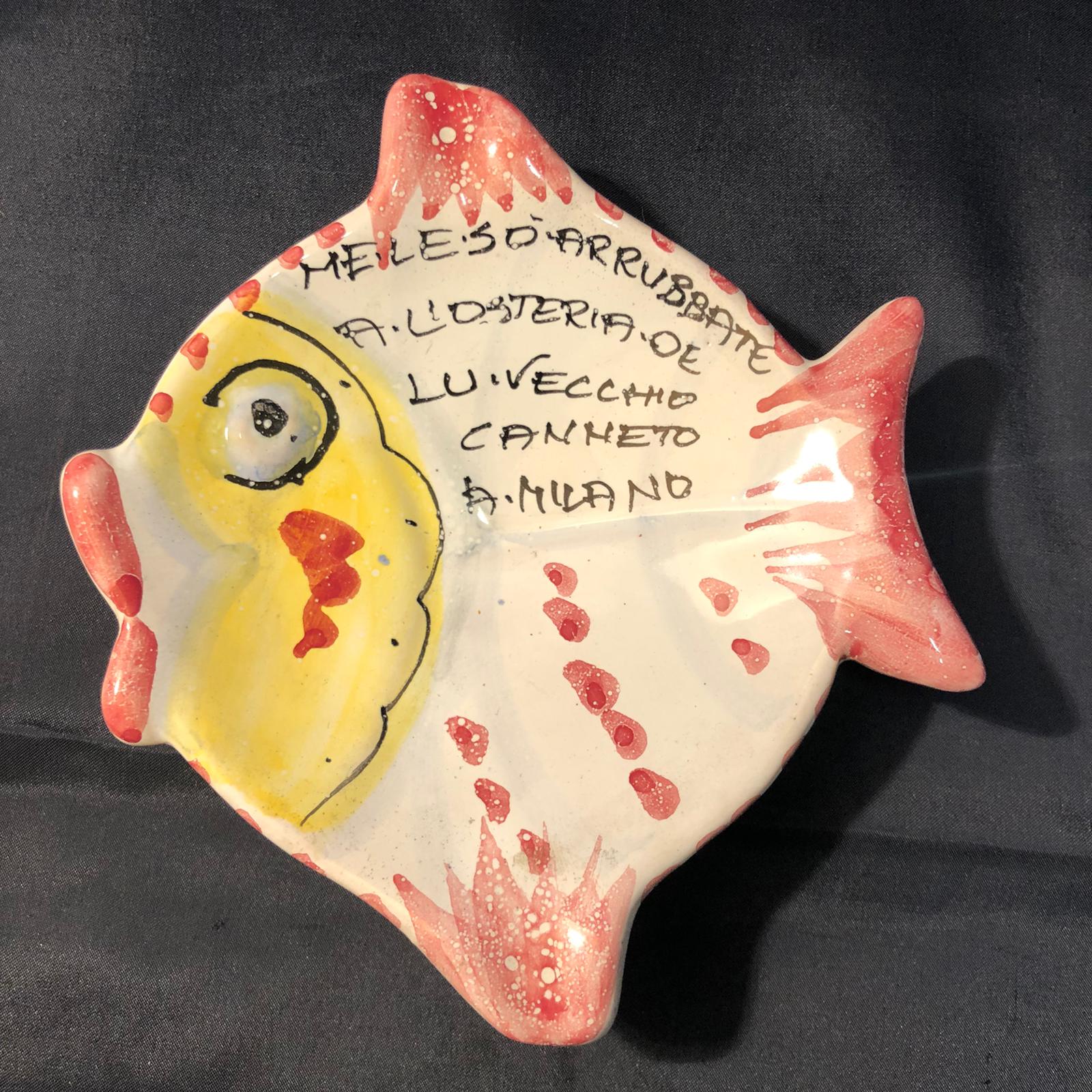 Posacenere pubblicitario in ceramica “pesce” dipinto a mano – Osteria del Vecchio Canneto Milano