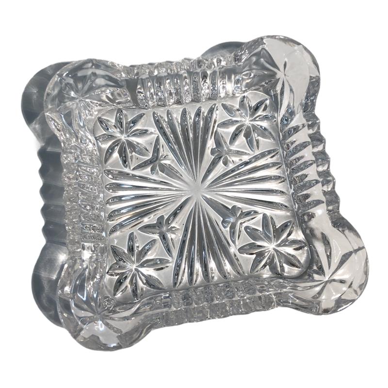 Tre ciotole quadre realizzate in vetro con la tecnica della molatura.
