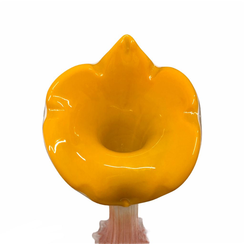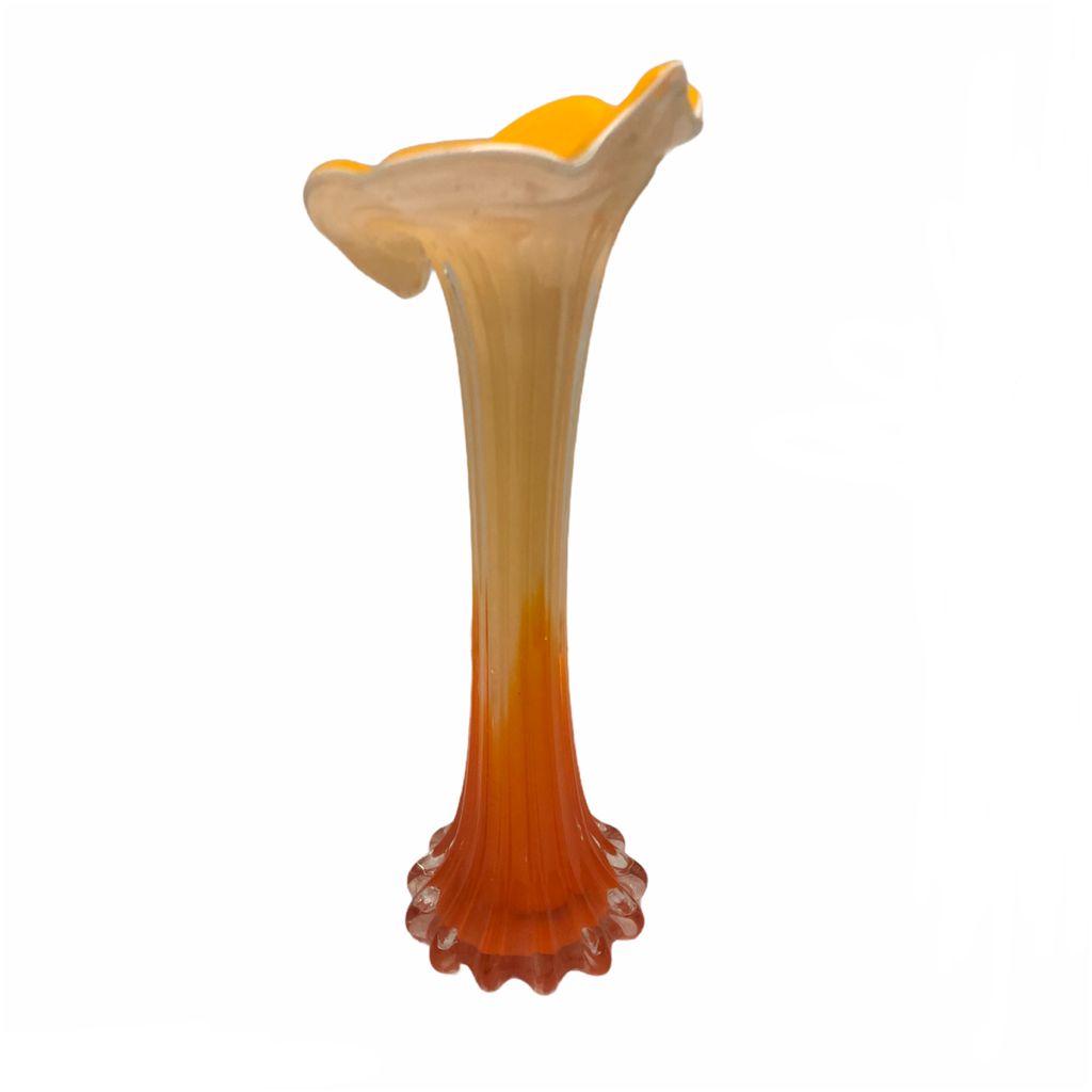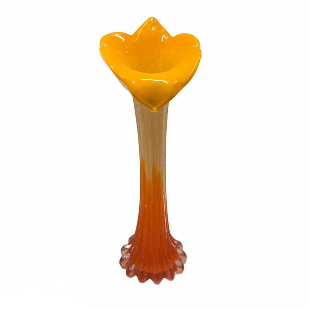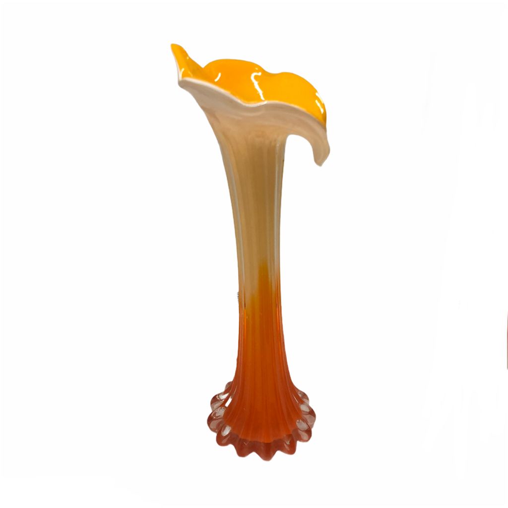 Vaso in vetro a calla arancione e ocra. Ideale per accogliere un bel mazzo di fiori e rendere elegante uno spazio della proprio casa.