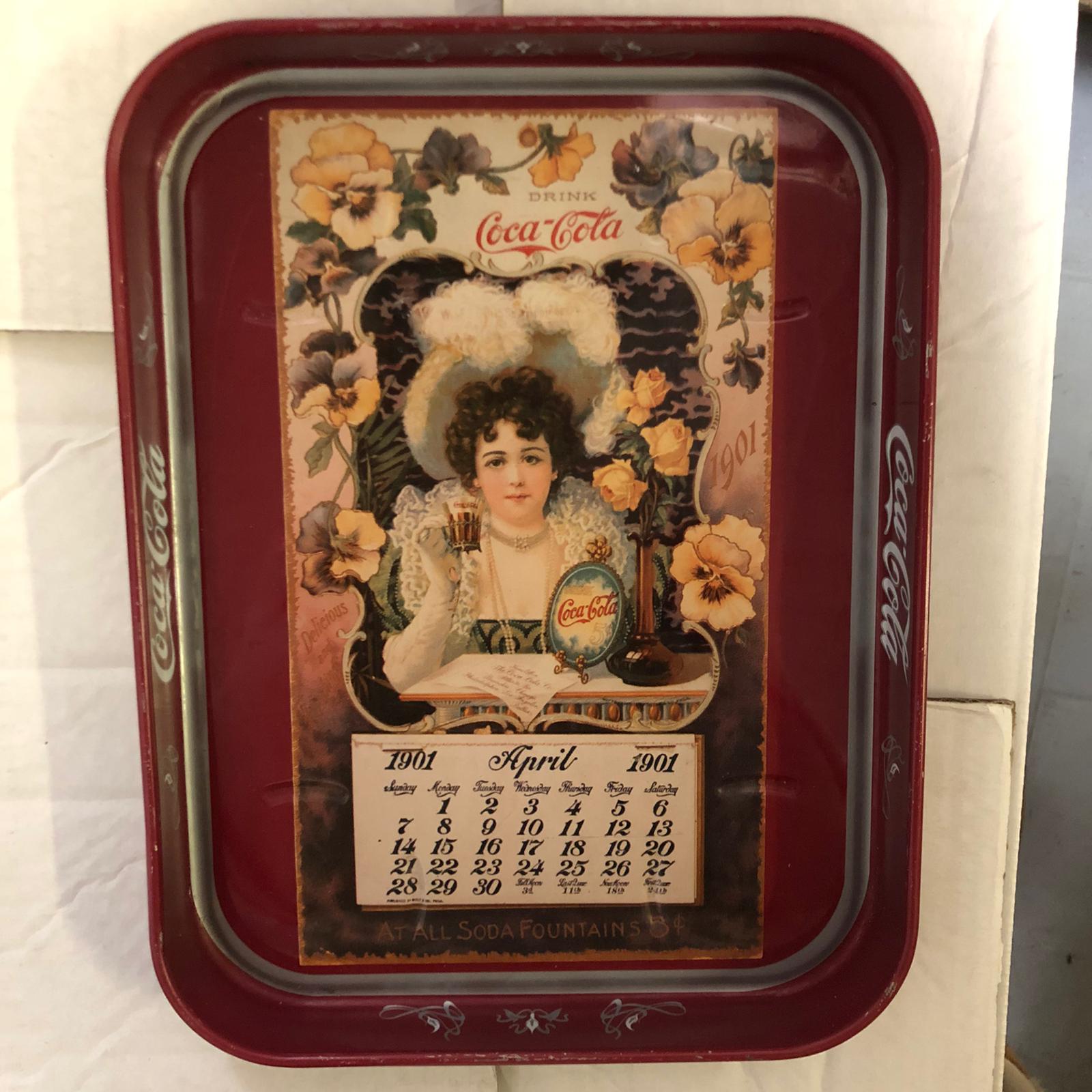 Vassoio Coca cola vintage con calendario di aprile 1901